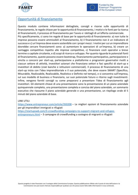Questo modulo contiene informazioni dettagliate, consigli e risorse sulle opportunità di