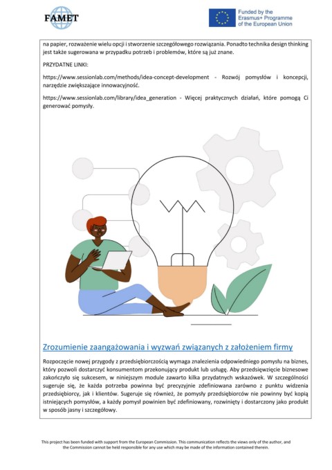 przedsiębiorcy, jak i klientów. Sugeruje się również, że pomysły przedsiębiorców nie powinny być kopią