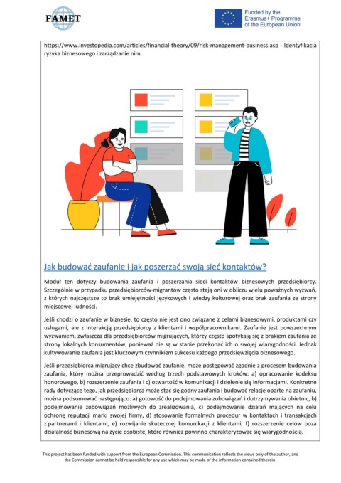 Moduł ten dotyczy budowania zaufania i poszerzania sieci kontaktów biznesowych przedsiębiorcy.