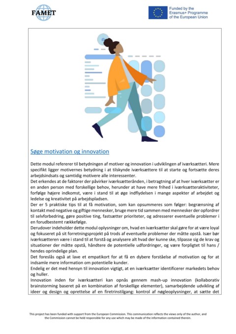 Dette modul refererer til betydningen af motiver og innovation i udviklingen af iværksætteri. Mere