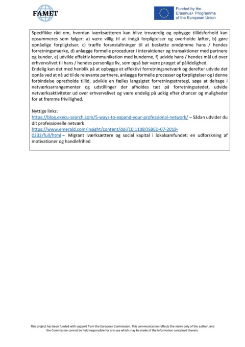 Specifikke  råd  om,  hvordan  iværksætteren  kan  blive  troværdig  og  opbygge  tillidsforhold  kan