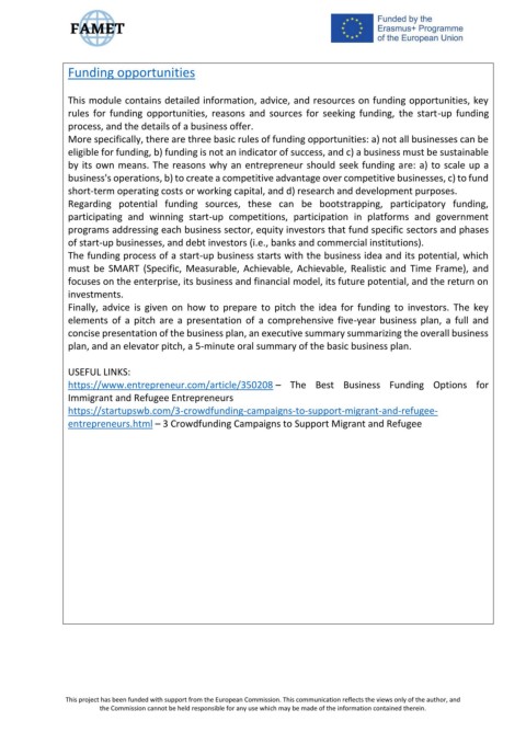 This module contains detailed information, advice, and resources on funding opportunities, key