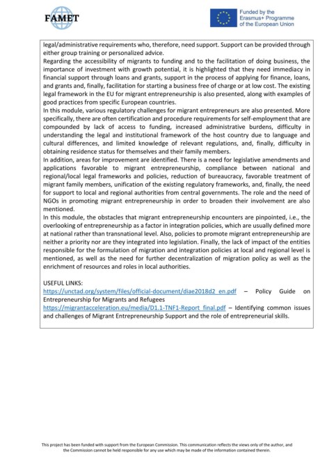 In this module, various regulatory challenges for migrant entrepreneurs are also presented. More