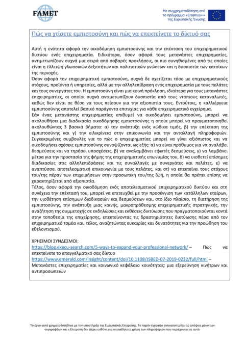 Αυτή η ενότητα αφορά την οικοδόμηση εμπιστοσύνης και την επέκταση του επιχειρηματικού