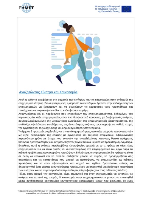 Αυτή η ενότητα αναφέρεται στη σημασία των κινήτρων και της καινοτομίας στην ανάπτυξη της