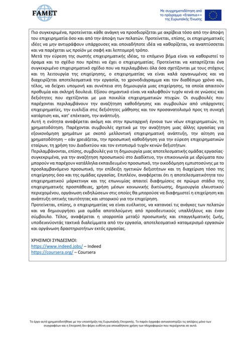 δεξιότητες που σχετίζονται με μια ποικιλία επιχειρηματικών πτυχών. Οι συμβουλές που