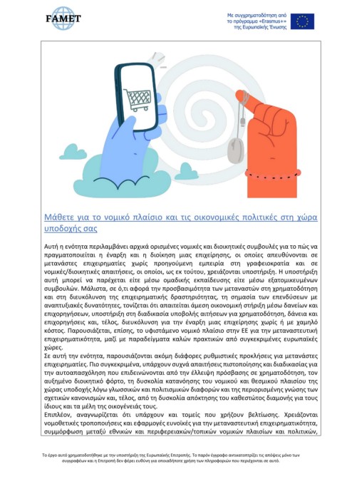Αυτή η ενότητα περιλαμβάνει αρχικά ορισμένες νομικές και διοικητικές συμβουλές για το πώς να