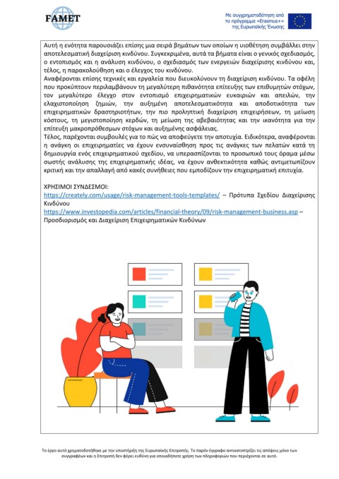 Αναφέρονται επίσης τεχνικές και εργαλεία που διευκολύνουν τη διαχείριση κινδύνου. Τα οφέλη